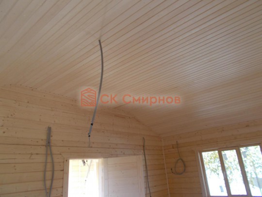 Потолки, стены вансардного каркасного этажа ( если он есть ) обшиваются сухой вагонкой.