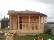 Терраса необычайно привлекательной формы дает своему обладателю широкий спектр возможностей: здесь можно установить небольшой мангал и садовую мебель, для полноценного отдыха между принятиями банных процедур. Для вечерних посиделок террасу можно украсить цветами и небольшой прозрачной гардиной, таким образом, вы создадите великолепный уголок, в котором можно будет послушать пение птиц или стрекотание кузнечика.