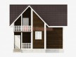 На фото представлен проект красивого дома №159 габаритами 8х8 метров и отличной планировкой общей площадью 116 квадратных метров. Можно выделить несколько особенностей проекта: терраса, балкон, веранда, туалет, ванная, санузел. Коттедж с мансардой, может использоваться как зимний, для постоянного проживания, коттедж.