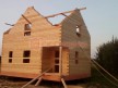 Из 9х14см, 14х14 см или 14х19 см. Сборка сруба в теплый угол на нагеля или гвозди 200 мм со сверлением отверстия в верхнем брусе (в зависимости от вида бруса).