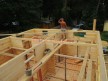 Из 9х14см, 14х14 см или 14х19 см. Сборка сруба в теплый угол на нагеля или гвозди 200 мм со сверлением отверстия в верхнем брусе (в зависимости от вида бруса).