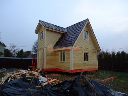 В стандартную комплектацию входит опорно-столбчатый фундамент, сам дом, построенный из профилированного бруса естественной влажности, филенчатые двери, кровля из ондулина (или оцинкованного профнастила), утепление минеральной ватой, окна с двойным остеклением и фурнитурой, а также многое другое (точную комплектацию вы можете уточнить у наших менеджеров). Кроме того, в цену уже входит доставка (однако не безгранично, в пределах разумных расстояний), а также сборка дома из бруса на участке.