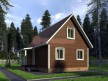 На фото представлен проект деревянного дома №99 габаритами 7.5х8 метров и отличной планировкой общей площадью 83 квадратных метров. Можно выделить несколько особенностей проекта: санузел. Коттедж с мансардой, может использоваться как зимний, для постоянного проживания.